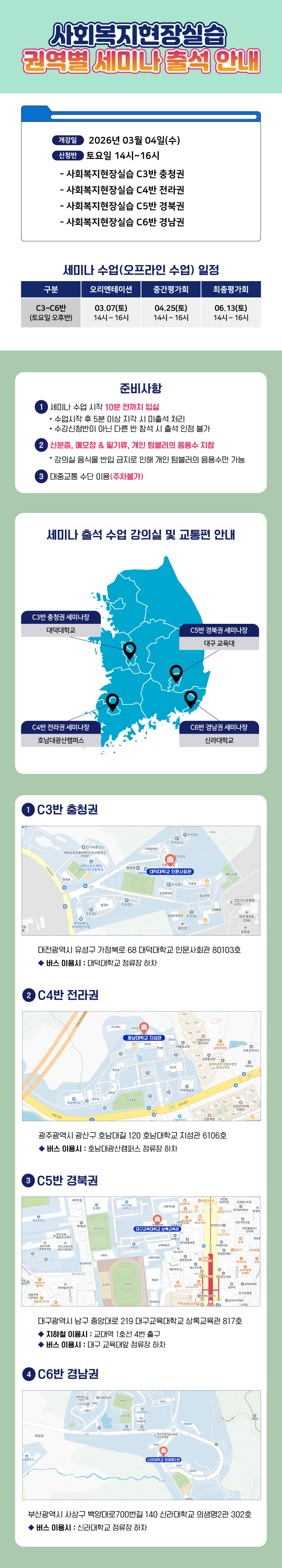 Á¦¸ñ 2026³â 1-6Â÷(3/4°³°­¹Ý) »çȸº¹ÁöÇöÀå½Ç½À ±Ç¿ªº° ¼¼¹Ì³ª Àå¼Ò ¹× ÀÏÁ¤ ¾È³»